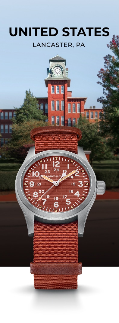 El modelo Khaki Field Mechanical Lancaster, disponible en exclusiva en boutique, rinde homenaje al lugar de nacimiento de Hamilton y al estilo arquitectónico de esta histórica ciudad de Pensilvania.