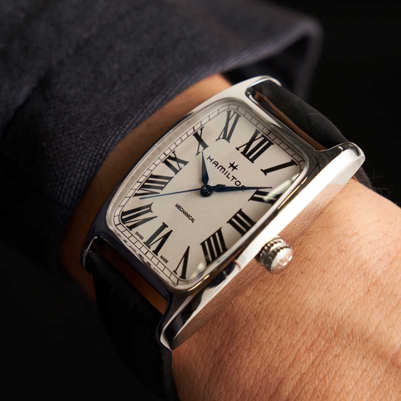 1892年にアメリカのペンシルベニア州で生まれた「ハミルトン」は、鉄道時計の名門として名を馳せ、アメリカを代表する時計ブランドとなった。同社の特徴は発想力にあった。伝統に縛られず、先進性を尊ぶ姿勢から生まれた時計たちは、常に時代の最先端を進むアメリカンカルチャーの代名詞だった。製造拠点をスイスに移した現在でも、「スイスの正確性で、アメリカンスピリッツを表現する」という信念は変わらない。なかでも過去の傑作デザインを継承する「アメリカンクラシック」は、“アメリカ色”が強いコレクション。いわゆるスイス時計とは違ったキャラクターがあるので、新しい時代を牽引する若きビジネスパーソンにこそ使ってほしい。普段はスマートウォッチで軽やかに過ごしつつも、特別なシーンには由緒正しき個性派時計を選ぶ。そういう視点を大切にしたい。