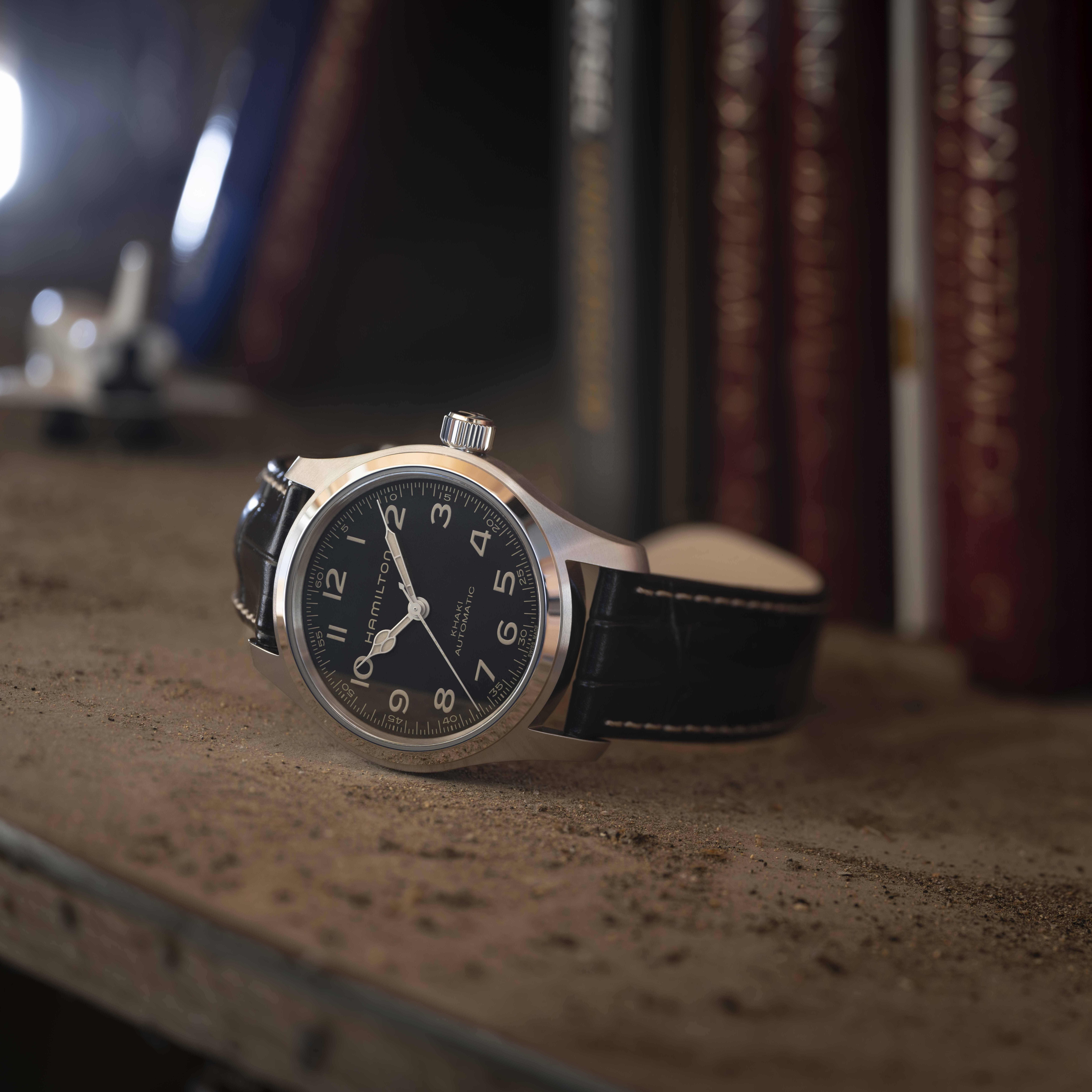 映画ファンの間で「マーフウォッチ」の愛称で親しまれている最も有名なSFウォッチ「カーキ フィールド マーフ」。ヴィンテージ感を漂わせるベージュのアラビアインデックスや印象的な針の形状は、オン・オフの両方で活躍するパートナーとして心地の良いデザインです。ハミルトンの遊び心とユニークネスが詰まった1本が、ふたりの物語を紡ぎます。