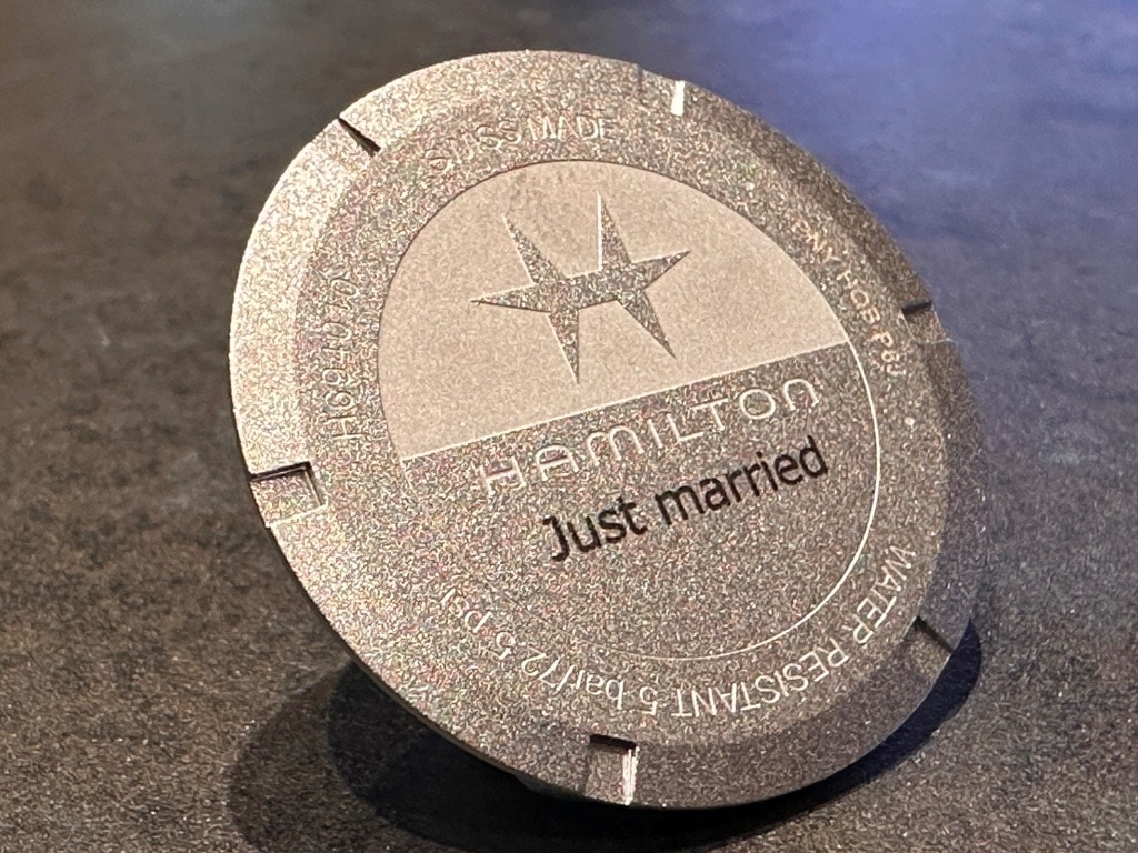 ハミルトンストア 東京 キャットストリートもしくは、ハミルトンオンラインストアで商品をご購入いただくと時計に文字彫刻をおこなうことが出来ます。*