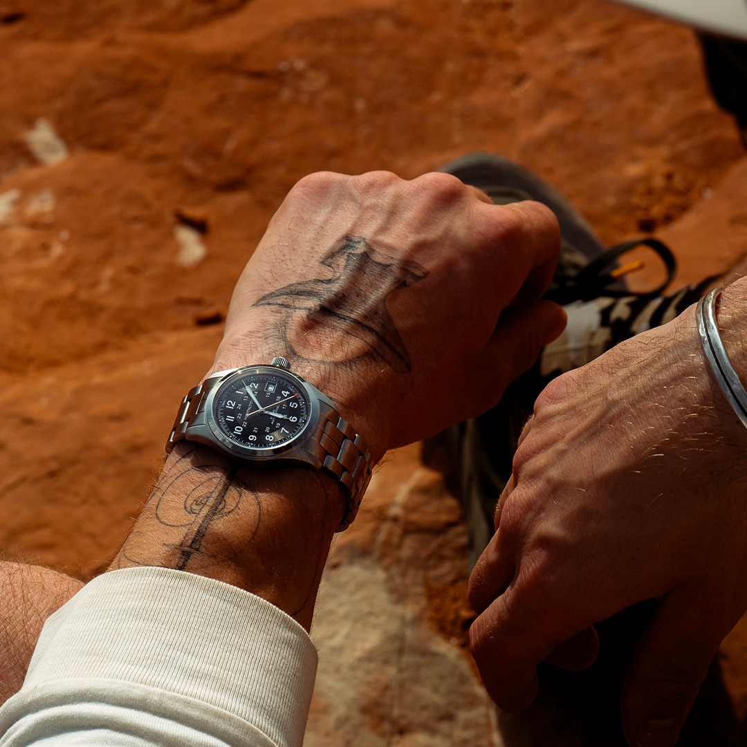 Stap de wereld van Hamilton Khaki binnen en ontdek de Aviation-, Field- en Navy-collecties, geïnspireerd op het land, de zee en de lucht.